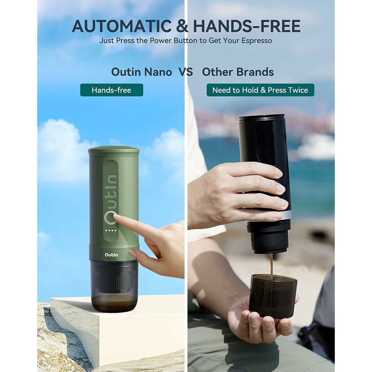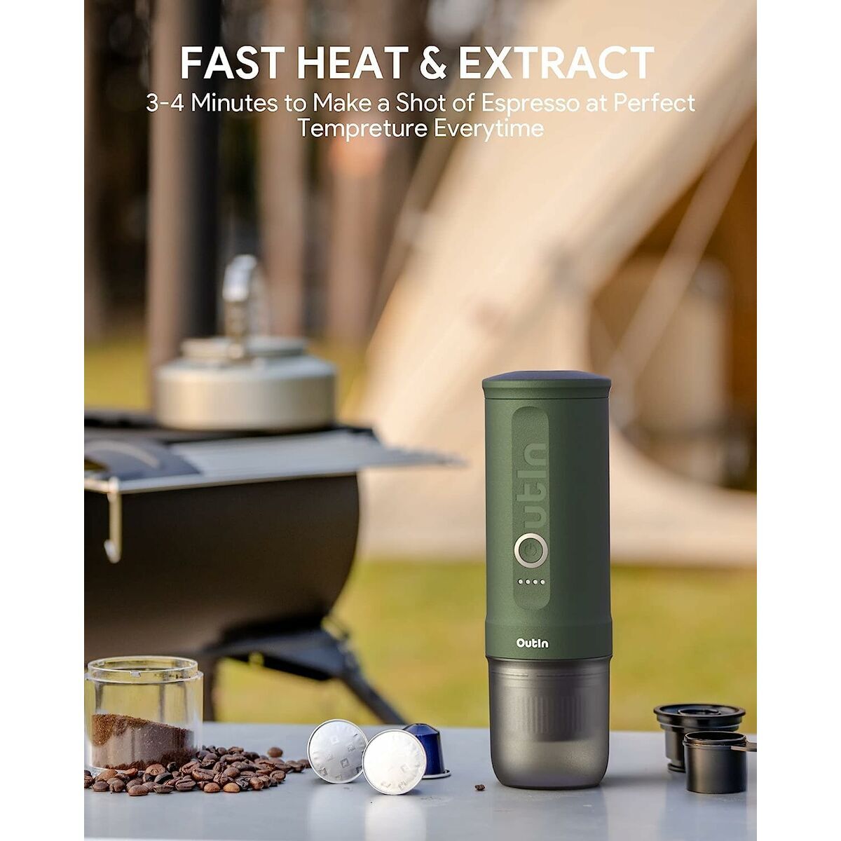 The Outin NESPRESSO espresso machine is an innovative solution for brewing quality coffee anywhere, thanks to its portable and compact design that makes it ideal for both home use and travel. Made of stainless steel, it ensures durability, hygiene, and resistance to corrosion, while adding a modern touch with its attractive green color. This model operates via a 5V power supply and features a built-in 7500 mAh battery, allowing use without always being plugged in—especially convenient for enjoying coffee away from home, at the office, or even during outdoor activities. Its EU plug makes it compatible with most European power outlets, further enhancing portability and international use. Compatibility with Nespresso capsules ensures simple and clean espresso preparation, delivering intense and aromatic coffee every time. With its combination of quality materials, autonomy, and easy handling, the Outin NESPRESSO stands out as a practical and reliable choice for coffee lovers seeking excellent espresso anytime, anywhere.