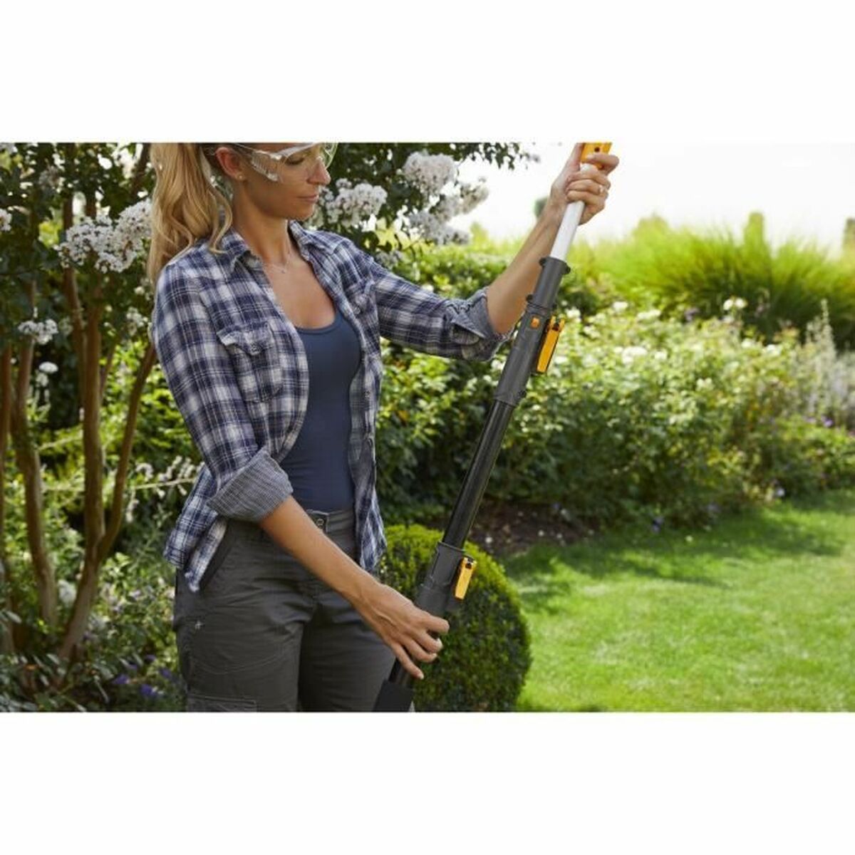 The MT100e Hedge Trimmer from Stephane Domergue is a tool designed for gardening tasks that require mobility and efficiency. This battery-powered hedge trimmer features wireless operation with a 20 V battery, eliminating cable dependence and making it easy to use in open or hard-to-reach areas. With a 300 W power output, the MT100e delivers suitable performance for trimming and maintaining small to medium hedges, combining strength and autonomy in a lightweight, manageable device. Its bright yellow color enhances visibility during use, increasing operator safety. Weighing approximately 5 kg, the tool balances robustness and ease of handling, reducing fatigue during extended work. The integrated battery ensures quiet, emission-free operation, a significant advantage over petrol models. This hedge trimmer is part of the STIGA MT100e multi-tool kit, suggesting compatibility with other accessories for greater versatility in various gardening tasks. Overall, the MT100e offers a practical and efficient solution for those seeking a lightweight, cordless hedge trimmer powerful enough for routine garden maintenance.