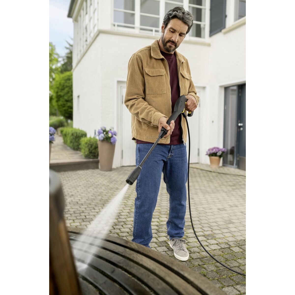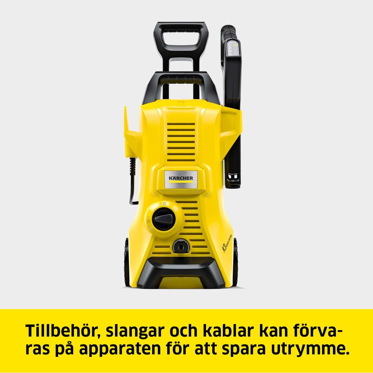 The pressure washer Kärcher K 3 POWER CONTROL is a high‑pressure cleaning solution for common household tasks, combining 1600 W power with adjustable pressure to suit different surfaces. It runs on mains electricity, connected to a 220–240 V, 50–60 Hz supply with an EU plug, ensuring stable, continuous use without batteries. It delivers up to 380 l/h flow rate, suitable for cleaning patios, garden furniture, bicycles, small vehicles or façades, using less water than a conventional hose. It includes a 7 m high‑pressure hose that gives a good working radius around the connection point and an integrated water filter that helps protect the pump from impurities in the supply. Its yellow and white design, characteristic of the brand, features two transport wheels and a retractable telescopic handle for easy movement and storage, even in tight spaces. The unit comes with a Vario Power spray lance, allowing you to select three pressure levels and a specific detergent mode, plus a rotating nozzle designed to loosen and remove stubborn dirt in targeted areas. With a weight of about 7 kg and a 5 m power cable, it offers well‑balanced, comfortable handling for regular use around the home. Made by Kärcher, a leading brand in pressure cleaning, the K 3 POWER CONTROL is an electric pressure washer sized for routine maintenance of outdoor areas and vehicles.