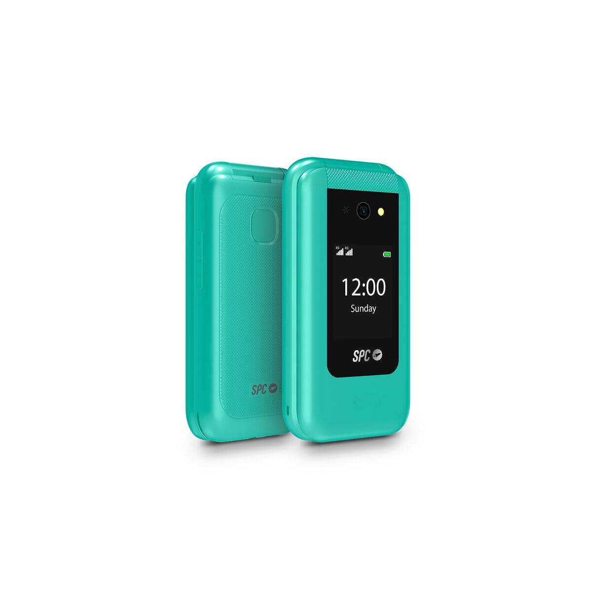The SPC 2336V is a mobile phone for seniors specially designed to make communication easier for those seeking functionality, simplicity, and accessibility in their daily device. It stands out for its clamshell design, which protects the screen and prevents accidental presses, as well as its intuitive interface, ideal for users who value ease of use. Equipped with 4G connectivity, it enables high-quality calls and fast messaging, and thanks to the Dual SIM feature, you can manage two phone lines simultaneously—a practical option for separating personal and family contacts. It includes an integrated FM Radio for entertainment without an internet connection, and the MMS function makes sending and receiving photos and multimedia messages easy. The SPC 2336V is available in green and turquoise, adding a modern and distinctive touch. For connectivity, it features USB and USB-C ports for convenient, fast charging, plus a 3.5 mm Jack input for compatibility with standard headphones, allowing for easy calls and listening to radio or music. Its robust build and comfort-focused design make this device a reliable and safe choice for those looking for a simple, durable phone perfectly suited to the needs of senior users. In summary, the SPC 2336V is a well-balanced device that covers essential communication and entertainment functions, focused on accessibility and practicality.