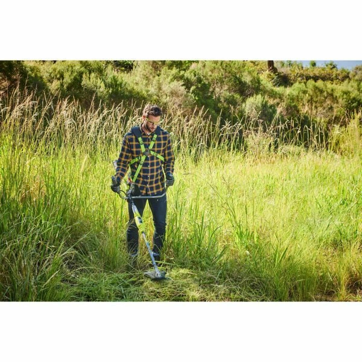 The RYOBI RBC36X26BG2-0 multifunction brush cutter is an electric tool designed to deliver high performance in gardening tasks, especially clearing and maintaining green areas. It operates with a 36 V battery, providing enough power for demanding jobs while offering the advantage of mobility and no cables. It features a handlebar design that improves ergonomics and control during extended use, minimizing operator fatigue. Its head includes a Tri-Arc+™ 3-tooth blade with a 26 cm cutting diameter, allowing efficient work on both grass and tougher weeds, ensuring clean and precise cuts. The internal wiring is 1 x 1.65 mm, suitable for stable and safe electrical transmission. Additionally, it is equipped with a EU plug, facilitating connection and compatibility with standard power sources in Europe. This Ryobi model stands out for its combination of power and maneuverability, suitable for both homeowners and professionals needing a versatile tool for land clearing and gardening. The balance between its voltage, cutting size, and ergonomic design positions it as a reliable device for regular maintenance of landscaped areas and outdoor spaces. This multifunction brush cutter represents a compact and powerful option within the range of cordless garden care tools.
