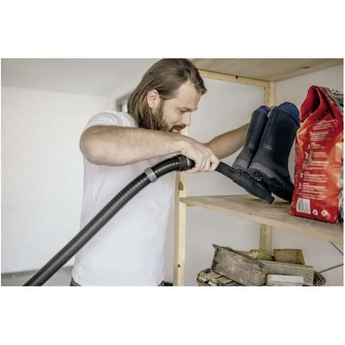 The Kärcher 19/4/20 wet and dry vacuum cleaner is a versatile tool designed for those who need efficiency in both domestic and professional cleaning. This wet and dry vacuum cleaner in yellow features a sturdy 19-litre stainless steel tank, ensuring durability and resistance to continuous use with wet or dry materials. It is equipped with 1000 W of power for effective suction of dust, coarse dirt, small wet debris, and liquids, making it suitable for deep cleaning in various settings such as homes, workshops, or garages. It includes practical narrow nozzles and a filter to reach difficult corners and keep the device in optimal condition. Thanks to its carrying handle, moving the vacuum is easy and safe, enhancing maneuverability even in large or obstacle-filled spaces. This model operates when connected to the mains and works at a noise level of 75 dB, placing it in a moderate range within its category for comfortable extended use. Ideal for those seeking reliable performance for vacuuming both dust and liquids, the Kärcher 19/4/20 stands out as a robust and efficient solution for versatile cleaning challenges.