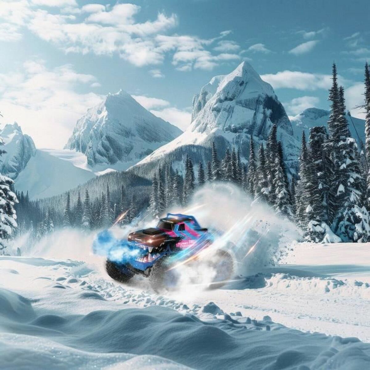 The radio-controlled car TURBO CHALLENGE Smashroar TC100 by MGM is a remote-controlled vehicle designed to offer a dynamic and exciting experience in the world of modeling. This 1/12 scale model features a robust and attractive blue design, made from plastic material that provides durability and lightness for agile and long-lasting handling. It includes the option to produce smoke effects, adding realism and a distinctive visual touch during use, enhancing fun for users of all ages. The car comes equipped with a rechargeable battery for continuous performance, along with the batteries needed to operate the remote control, enabling immediate start-up without requiring additional accessories. Its technical setup allows precise control and stable driving, ideal for both beginners and advanced enthusiasts seeking a versatile model for recreational use or amateur competition. Through its control system, the user can maneuver remotely with accuracy, taking advantage of the combination of materials and aerodynamic design that favor speed and durability on different terrains. Overall, this MGM remote-controlled car is a complete and accessible option for those wanting to start or enjoy the RC hobby, combining ease of use with features that enhance driving experience and visual appeal.