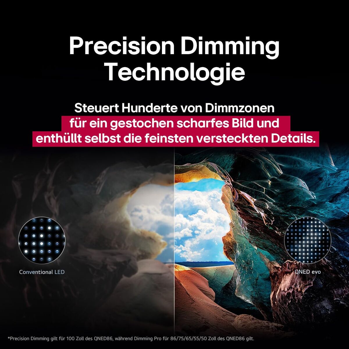 The LG Smart TV model 100QNED86A6 100 is a large-format television with an impressive 100-inch flat screen that delivers outstanding visual quality thanks to its 4K Ultra HD resolution (3840 x 2160 pixels). Featuring advanced QNED panel technology, this TV ensures intense colors and enhanced contrast that optimize the viewing experience, ideal for spacious rooms and demanding users seeking high image fidelity. It runs on WebOS version 25, providing intuitive navigation and access to a wide range of apps and online content via its built-in Wi-Fi connectivity. This model supports various digital signal formats, including DVB-C, DVB-S, DVB-S2, DVB-T, and DVB-T2 standards, and also offers analog and digital tuning, ensuring maximum versatility for receiving TV broadcasts in different modes. Its estimated audio power of 40W RMS delivers clear sound sufficient to accompany the large screen without immediate need for external speakers. Key features include AMD FreeSync integration for smoother image motion, especially useful for gaming and fast-paced content, as well as smart tools like web browsing, teletext, electronic program guide (EPG), and an ECO mode to optimize energy consumption, although it has an energy rating of F. The black color design contributes to a sober and elegant aesthetic, easily fitting any environment. Overall, the LG 100QNED86A6 100 offers a complete solution for those seeking a giant screen with high definition and smart functions, suitable for both regular entertainment and advanced multimedia use.