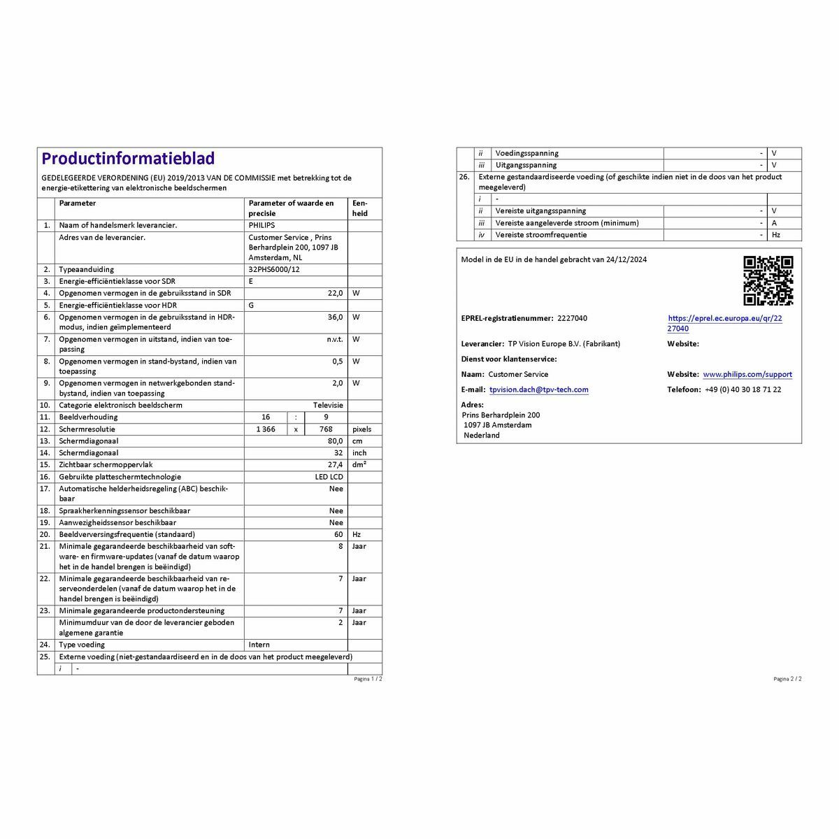 The Philips 32-inch Smart TV is a television designed for those seeking a balance between visual quality and smart connectivity in a compact format. With a 32″ flat screen and an HD resolution of 1366 x 768 pixels, it delivers sharp, detailed images perfectly suited for small spaces like bedrooms or compact living rooms. This model features the Titan OS operating system, which simplifies access to apps and online services thanks to its built-in WiFi connectivity, allowing streaming, browsing, and interactive content without extra devices. For sound, it offers an estimated 12 W RMS output, enough for clear audio in standard home environments. Its black color design maintains a sober, versatile look that fits various decor styles. Regarding signal reception compatibility, this TV is equipped with multiple digital tuners (DVB-C, DVB-S, DVB-S2, DVB-T, DVB-T2, and DVB-T2 HD), ensuring broad coverage for cable, satellite, or terrestrial digital broadcasts. The energy rating E reflects moderate consumption consistent with TVs of this size and range. In summary, this Philips 32″ Smart TV offers a balanced experience for those needing a compact device with smart features and support for multiple digital signal formats, ideal for everyday use with access to varied multimedia content efficiently.
