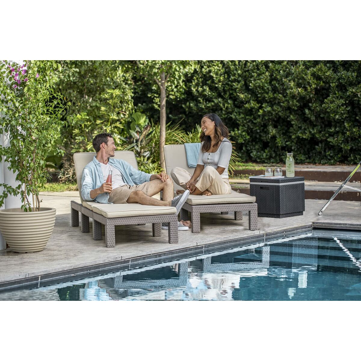The Daytona sun lounger from the renowned brand Allibert by KETER is a practical and elegant solution for outdoor relaxation, designed especially for those seeking comfort and functionality in garden or terrace furniture. This lounge chair features a frame made of injection-molded resin and plastic, durable materials that ensure longevity and easy maintenance, ideal for outdoor use. Its finish in beige and cappuccino tones adds a neutral and sophisticated style that blends with any setting, creating a warm and inviting atmosphere. The sun lounger includes a comfortable cushion and an adaptable design that allows adjusting the backrest to four different positions, letting the user choose the posture that best suits their needs, from a fully horizontal position for sunbathing to a more upright position for reading or resting. With dimensions of 195 x 65 x 25.5 cm, it offers ample space for lying down, ensuring comfort without sacrificing stability. Additionally, this model is designed for self-assembly, facilitating transport and setup without the need for special tools. The balance of quality and practicality in the Daytona sun lounger makes it a versatile option for gardens, pools, and terraces, where style, durability, and comfort are essential. This product reflects Allibert by KETER’s commitment to functional and aesthetic furniture, positioning it as a reliable choice for those who value design and comfort in their outdoor spaces.