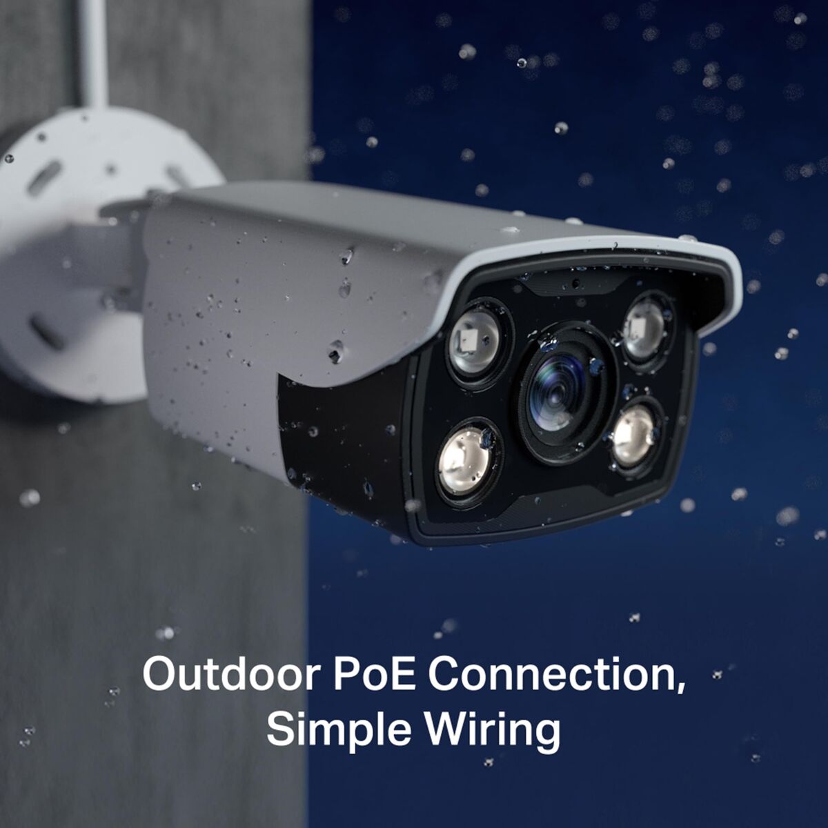 The surveillance camcorder TP-Link VIGI C340 is a bullet-type IP security camera for outdoor use that provides professional 24/7 monitoring with 4 MP resolution and full‑color night vision, combining a high‑resolution CMOS sensor with floodlight and IR LEDs for sharp, detailed images even in complete darkness. Its metal and plastic housing with IP66 rating resists rain, dust and demanding environments, ideal for façades, parking areas, entrances and perimeter zones. It includes artificial intelligence for people and vehicle classification and advanced detection of area intrusion, line crossing, camera tampering or object left/removed, allowing precise alarm rules and notifications only for relevant events. It offers two‑way audio via its built‑in microphone and integrated speakers, letting you listen to the surroundings and talk remotely to people near the camera, useful in commercial and industrial sites. For connectivity, it features RJ45 LAN Ethernet with PoE for simultaneous data and power over a single cable, simplifying installation and avoiding extra adapters, plus WiFi support depending on the model. It supports local storage on MicroSD card up to 256 GB for direct recording and integrates with NVRs and network solutions thanks to its HDMI output and H.265+ video compression, which significantly reduces bandwidth and storage needs without sacrificing image quality. SmartVid video enhancement technologies such as Smart IR, WDR, 3D DNR and Night Vision optimize contrast, reduce noise and prevent overexposure, improving detail recognition in backlit or low‑light scenes. It includes password‑based data protection, status LED, reset button and a complete mounting kit for flexible ceiling, wall or pole installation, plus a user manual for guided configuration via the NVR interface, the VIGI mobile app or VIGI Security Manager software. Powered by 12 V DC or PoE and available in white or black, the TP-Link VIGI C340 is a robust, scalable IP video surveillance solution for businesses needing reliable, detailed outdoor visual control.