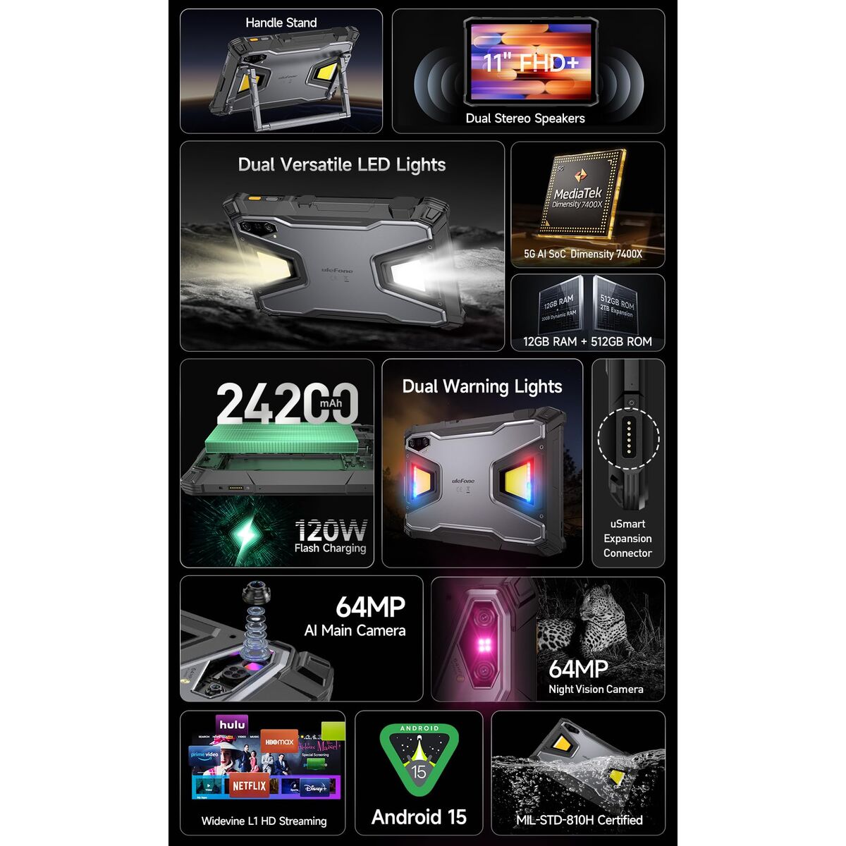 If you’re passionate about IT and electronics, like being up to date on technology and don’t miss even the slightest details, buy Tablet Ulefone ARMOR PAD 5 PRO 5G 11″ MediaTek Dimensity 9000 12 GB RAM 512 GB Black at an unbeatable price.