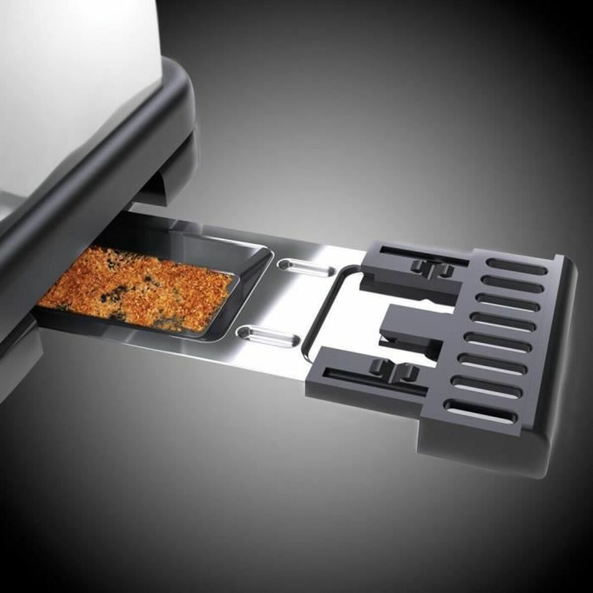 The Russell Hobbs 21395-56 toaster combines elegance and functionality to become an essential element in any modern kitchen. Made of stainless steel, this toaster stands out for its strength and durability, adding a sophisticated touch with its white and cream finishes, easily adapting to various decor styles. It offers an adjustable power between 1000 and 1100 W, ideal for quick and perfectly toasted bread, contributing to an efficient breakfast experience tailored to each user’s preferences. The presence of variable width slots (typical in models of this category) allows toasting from traditional sliced bread to thicker slices, ensuring even results. Additionally, its sturdy structure and design intended for daily use make both exterior cleaning and internal maintenance easy thanks to the usual crumb tray included in the range. Ease of use and optimized technical features highlight Russell Hobbs’ commitment to practical and reliable appliances, guaranteeing consistent performance day after day. Model 21395-56 represents a balanced choice for those seeking a powerful, versatile stainless steel toaster with refined finishes that perfectly combine quality and design in the home environment.