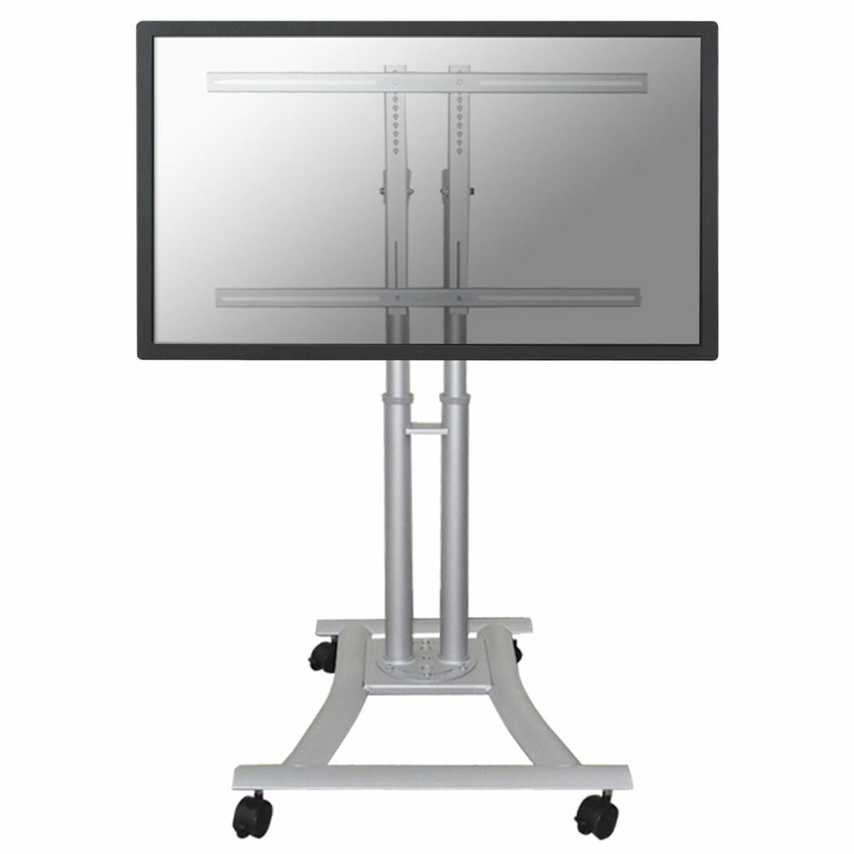 The Neomounts PLASMA-M1200 is a mobile, floor-standing TV mount designed to provide a practical and versatile solution for positioning flat screens. Compatible with LCD, LED, and plasma screens ranging from 27 to 70 inches (approximately 68 to 178 cm), this mount supports a maximum weight of 50 kg and fits VESA mounting patterns from 200×200 mm to 600×450 mm, ensuring compatibility with a wide variety of TVs and monitors. Its silver-colored frame includes a column for cable management, contributing to a neat and professional appearance. Featuring an adjustable height range from 80 to 120 cm, it allows the screen to be set at the ideal height for different environments and uses. Additionally, the mount offers up to 15 degrees of tilt to optimize the viewing angle for better ergonomics and visual experience. It is mounted on a trolley with four swivel wheels, two of which have brakes, providing mobility with stability and making it easy to move without risk of accidental movement once positioned. The portable and sturdy design makes the Neomounts PLASMA-M1200 especially suitable for settings such as exhibitions, presentation rooms, classrooms, or healthcare facilities where flexibility and mobility are essential. Overall, this floor stand is a functional mount that offers convenience and reliability for installing and using large screens, providing any space with a practical solution for professional display viewing.